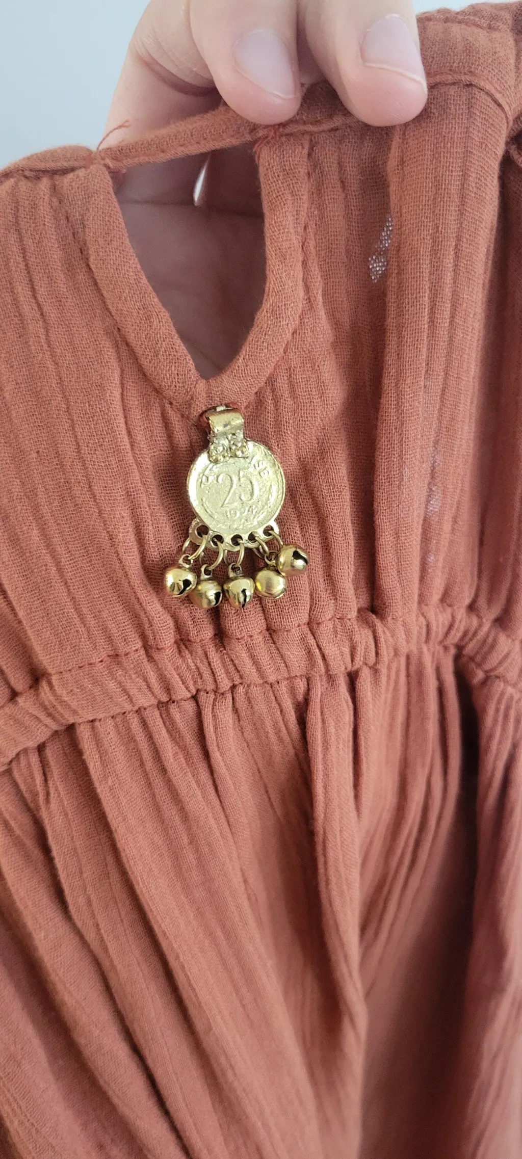100% gaze de coton & teint à la main. Taille unique, Elastique sous la poitrine.